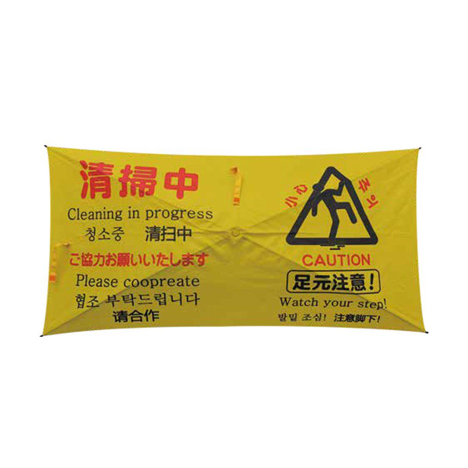 従来の立て看板では設置が難しいエスカレーター前や広い出入り口など、人の流れが多い場所での注意喚起に適しています。表示は「清掃中」「作業中」の2種類を用意しており、用途に応じて使い分けが可能。コンパクトでありながら視認性が高く、利用者に強いインパクトを与えることで事故防止に役立ちます。